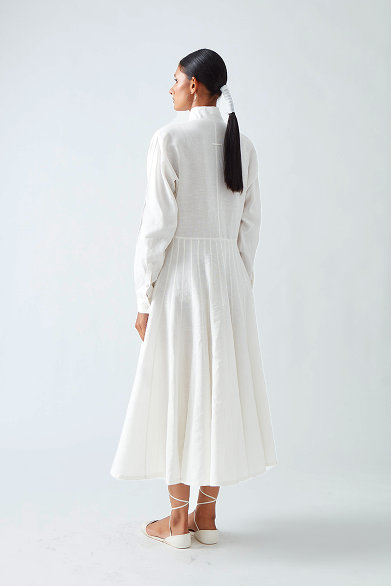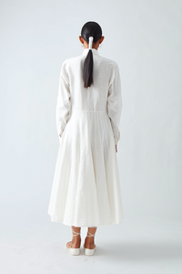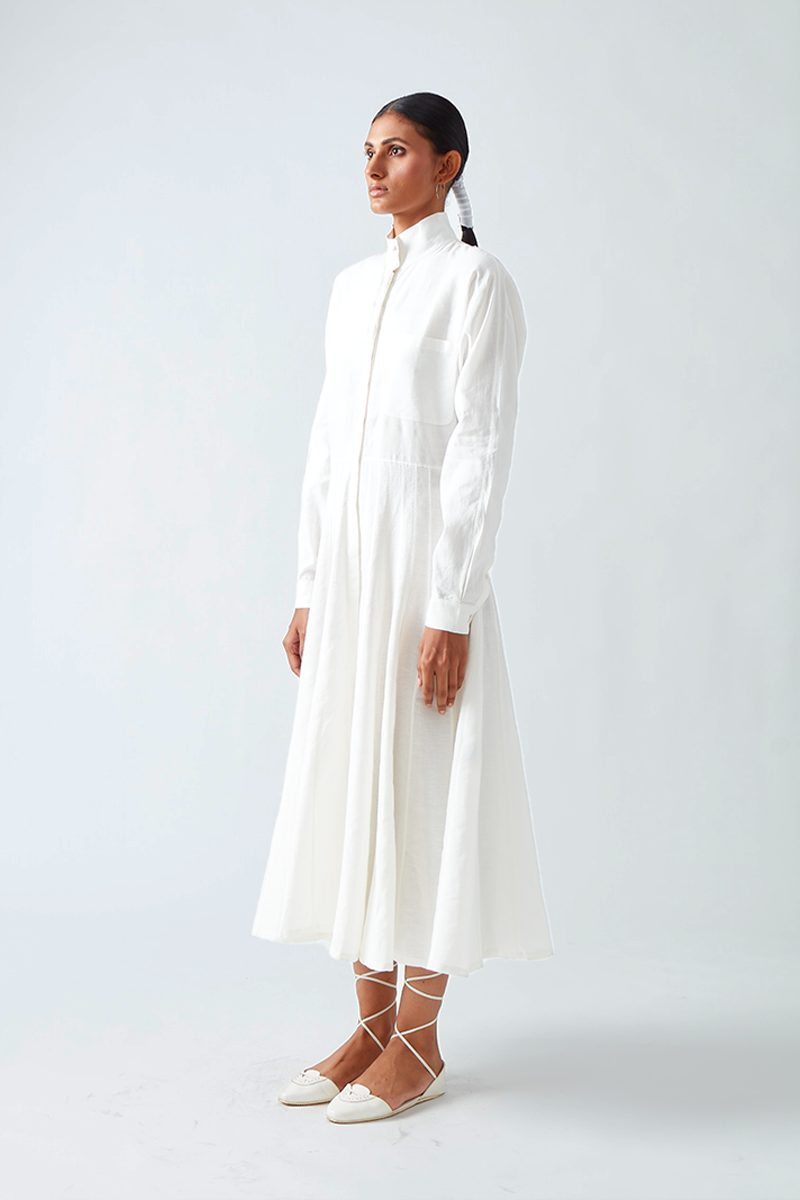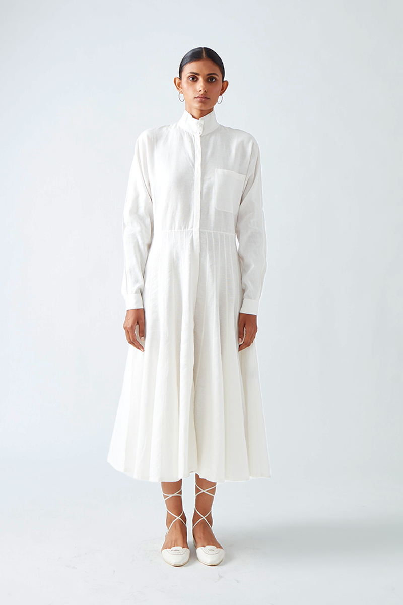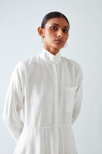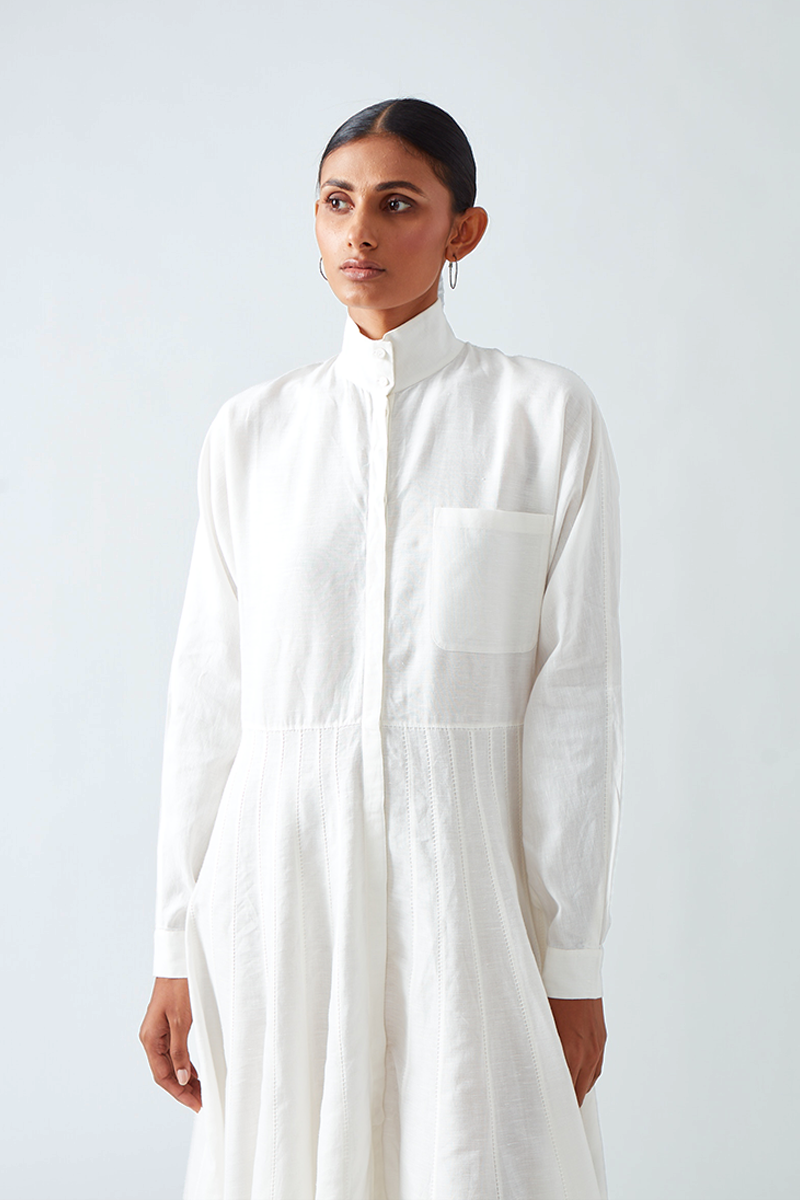 Our Ajeta paneled dress features a built up neck and concealed placket.