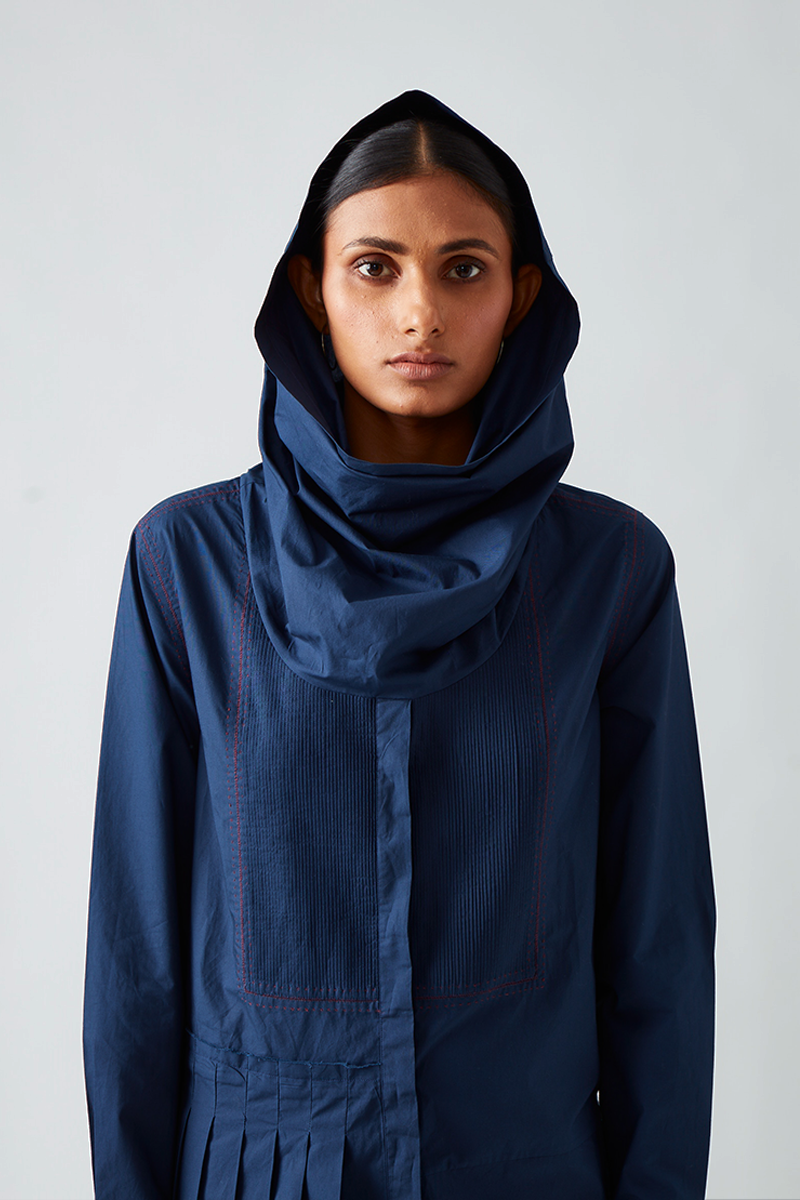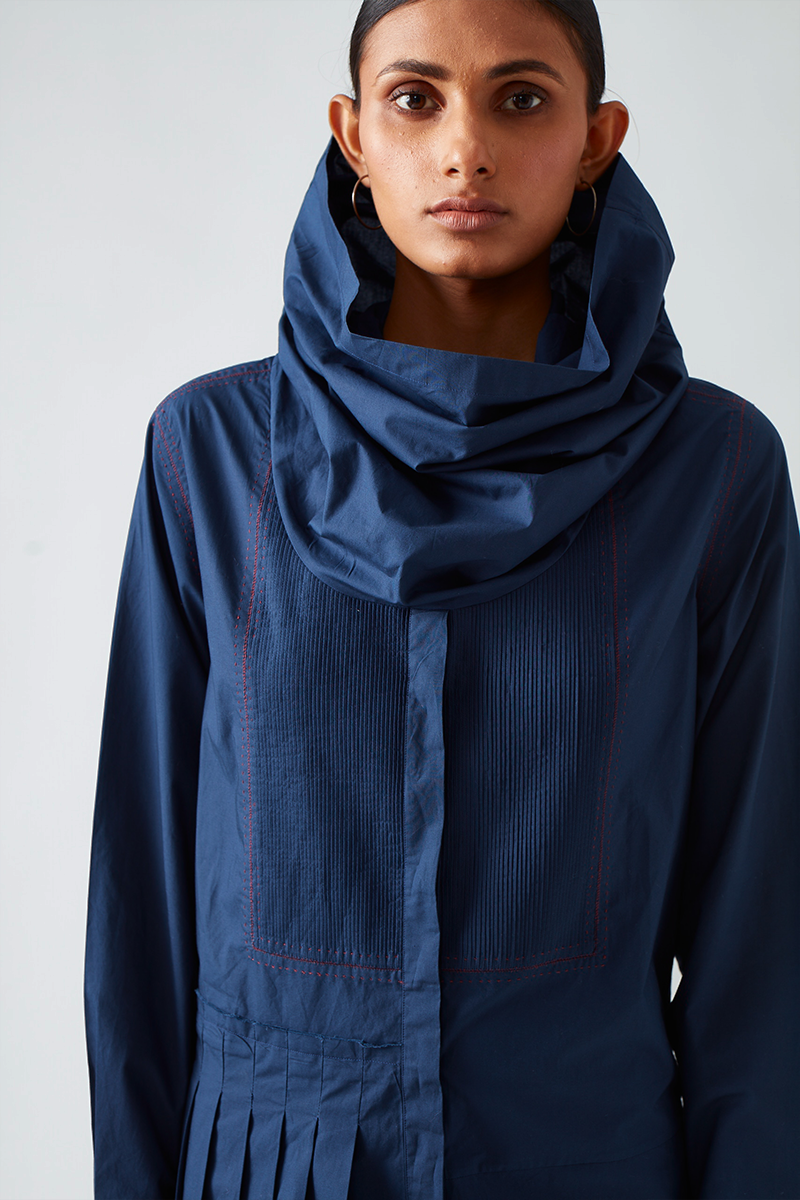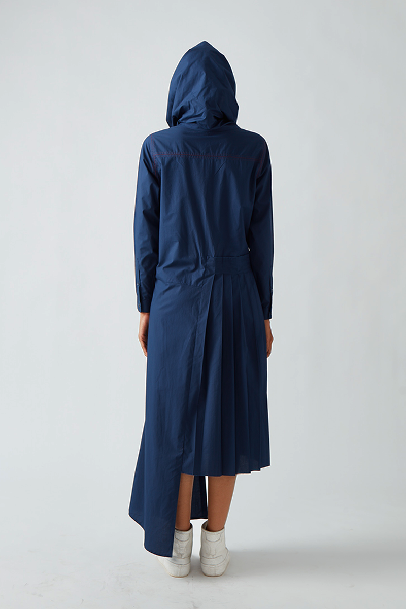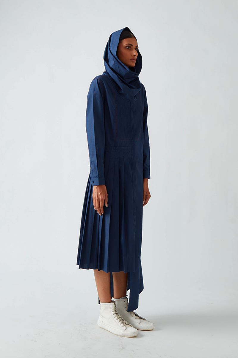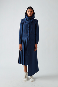 Our Antela asymmetric hemline dress comes with partial pleats and pintuck detailing at the yoke.