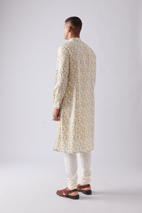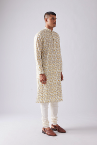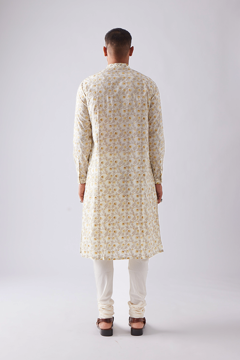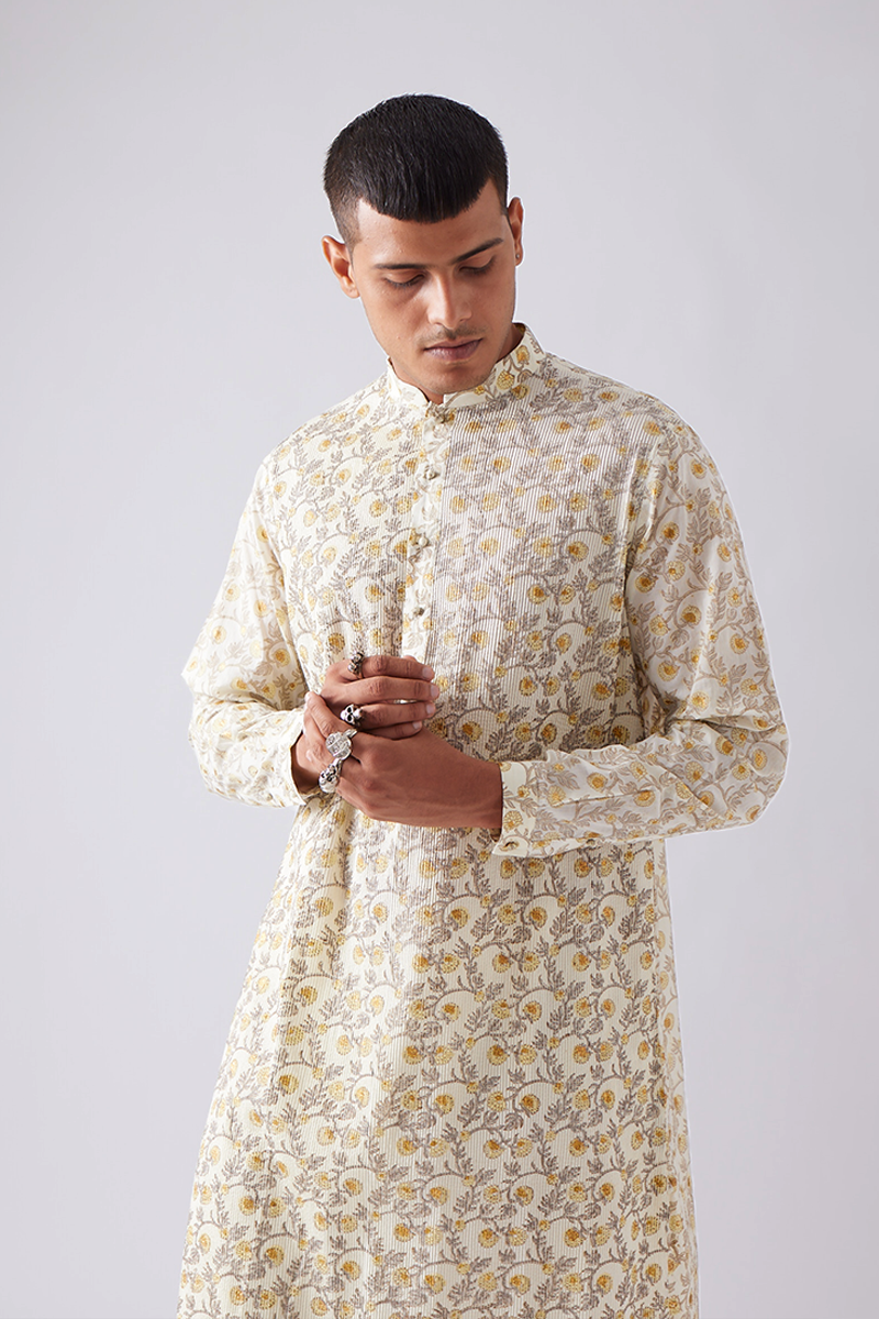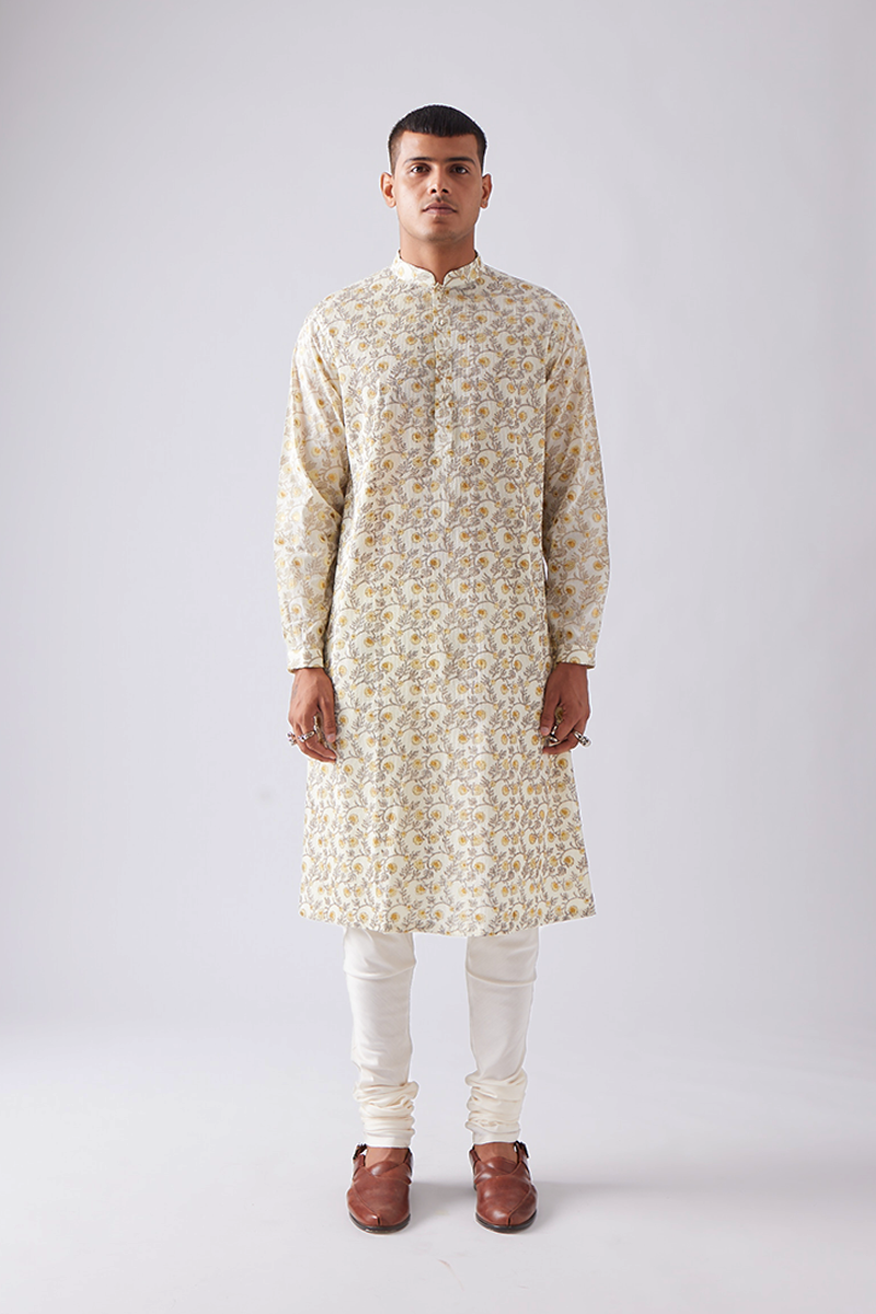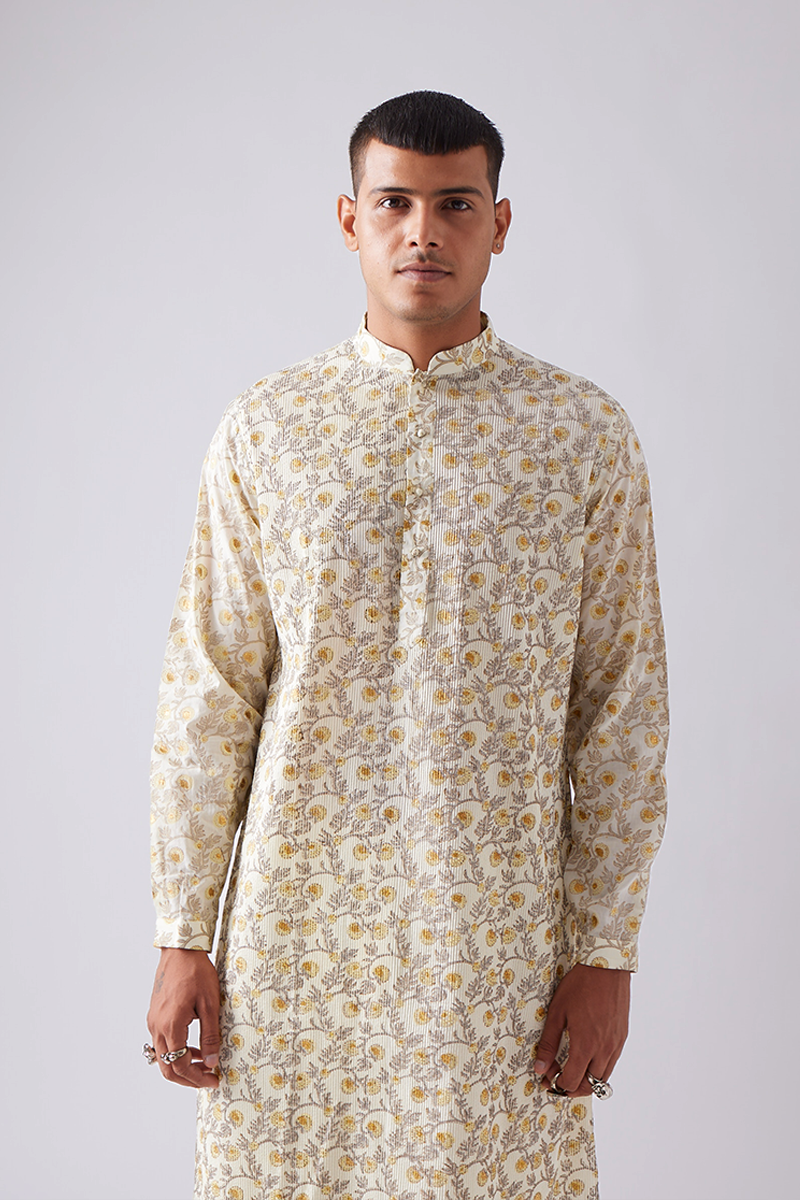 - Our front fine pintuck kurta features a band collar and all-over flower-dense hand print