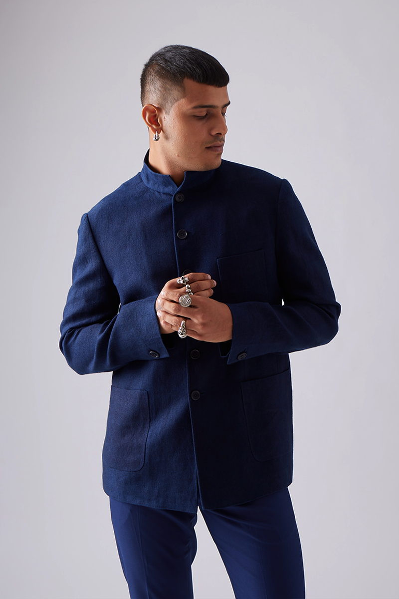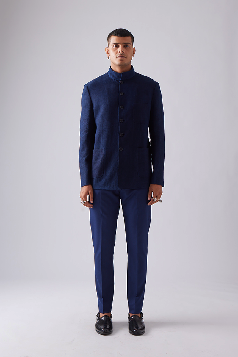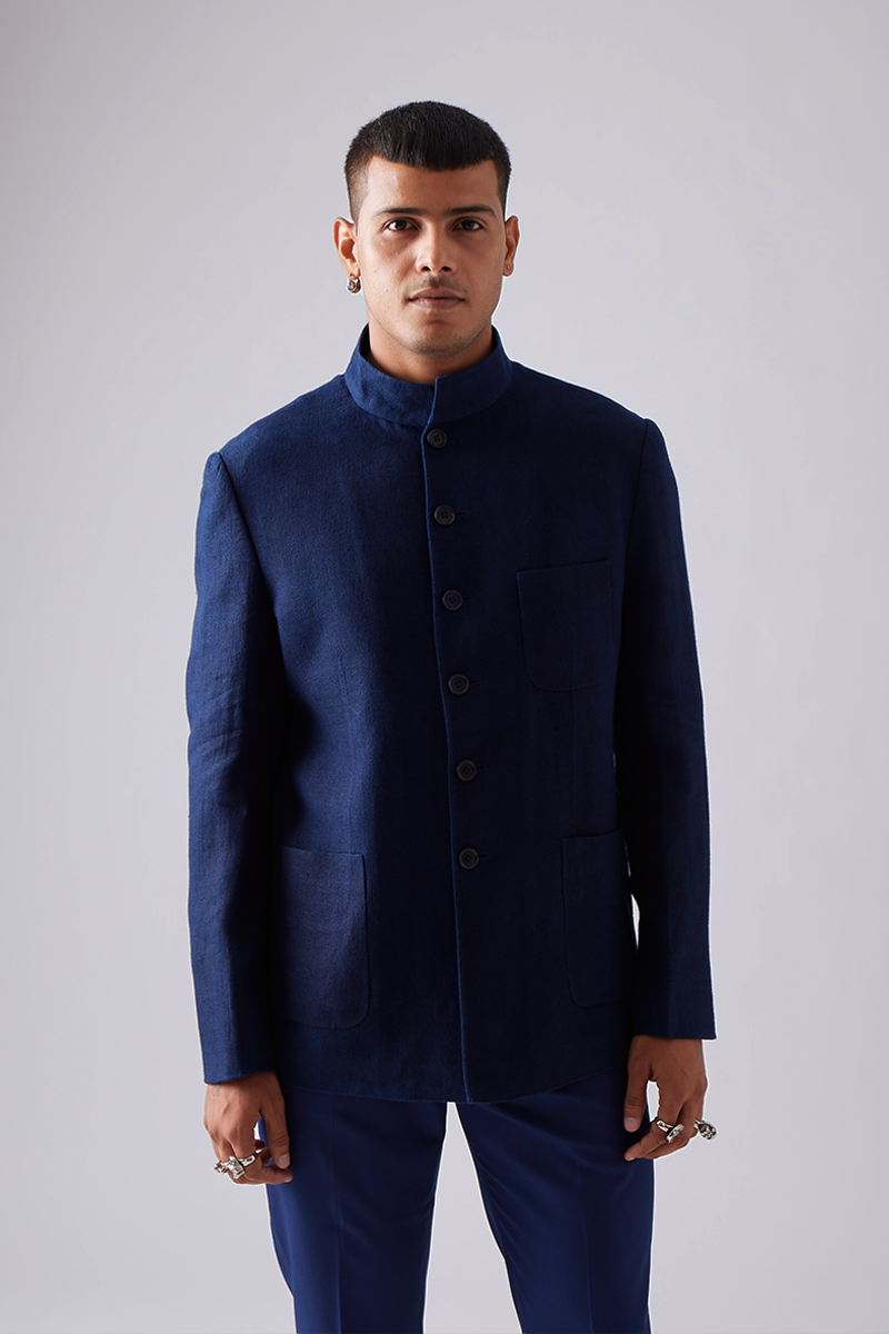 • Our Bilpan bandhgala  features a square collar that can also be styled open as shown in the image.