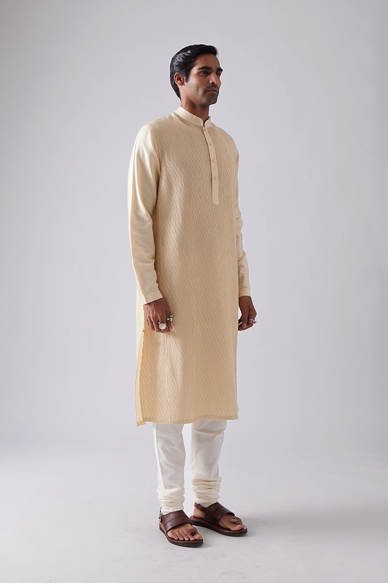 - Our kurta set features fine pintuck with 3D diagonal detailing with zari thread.