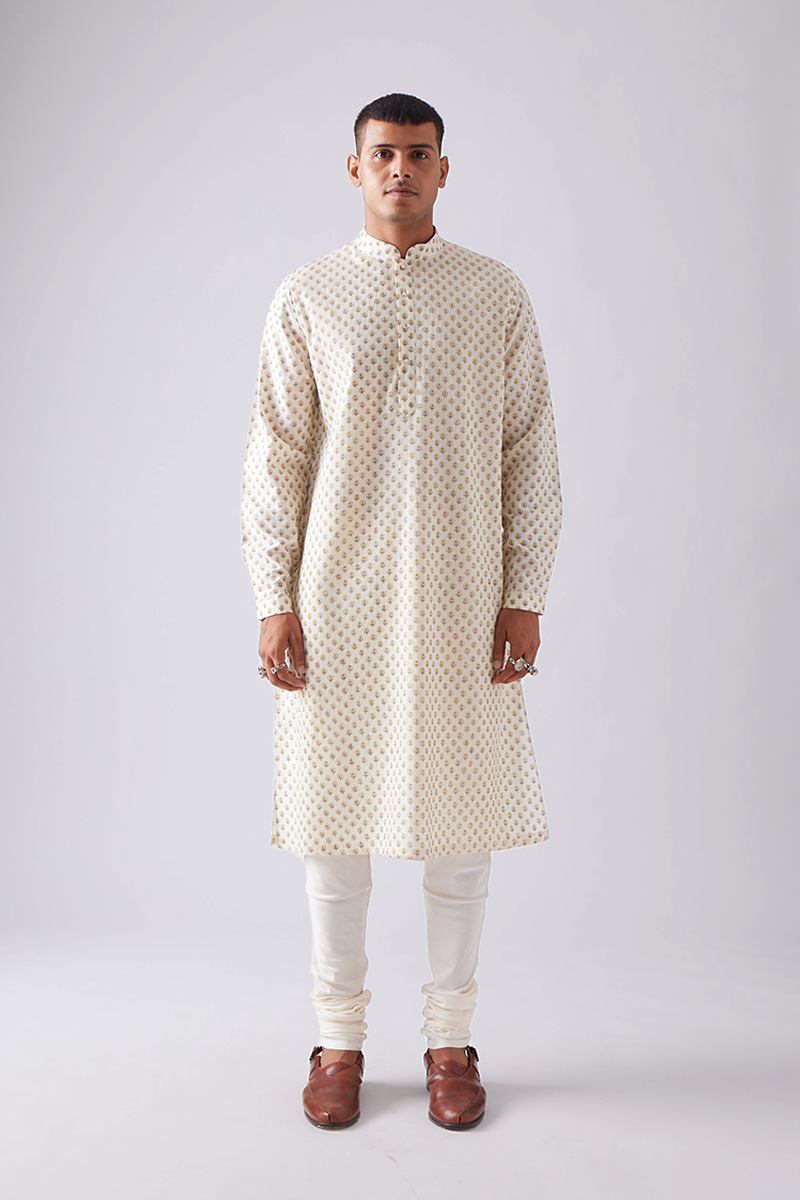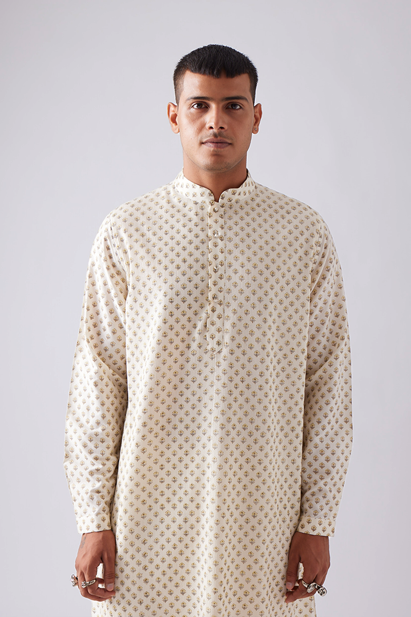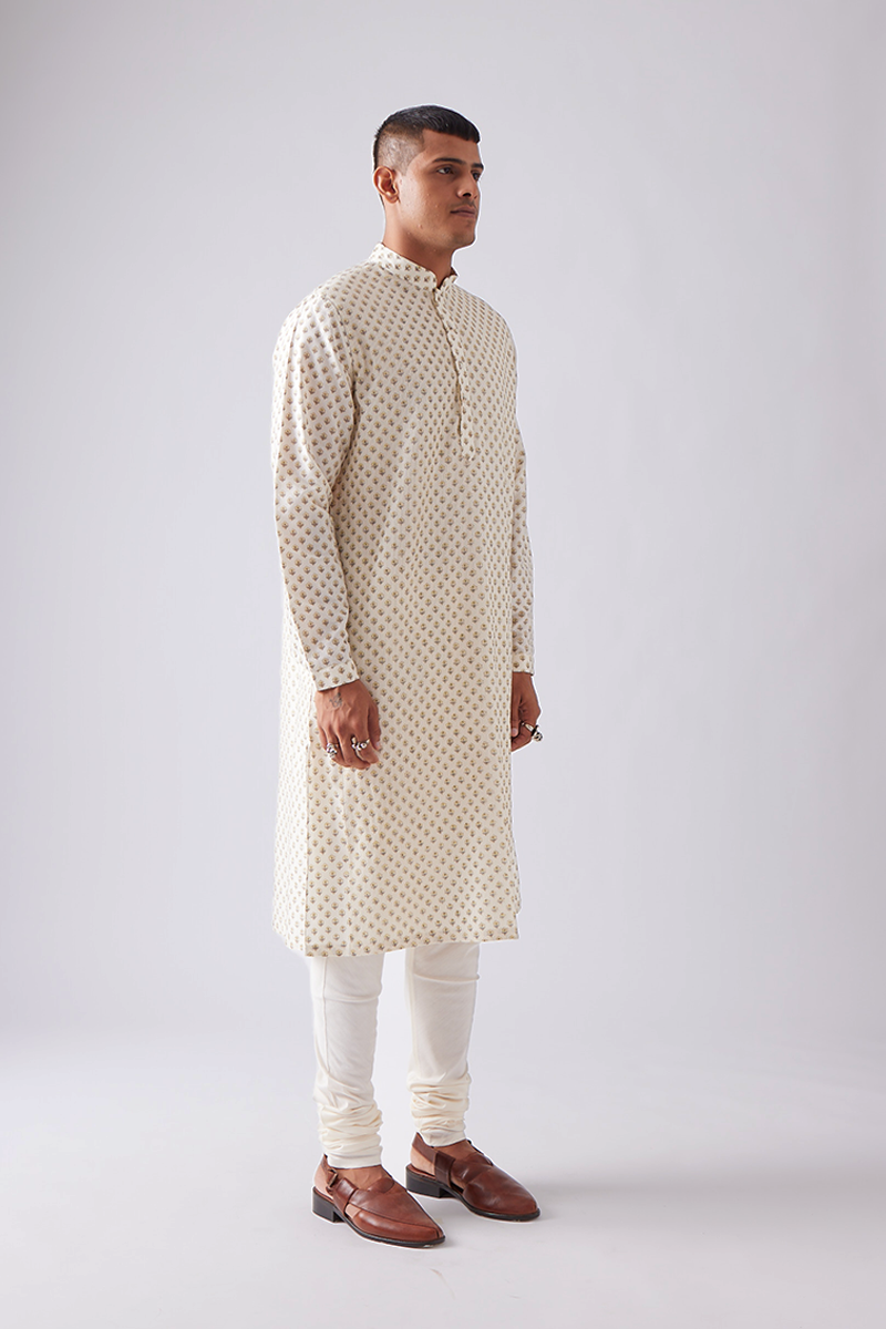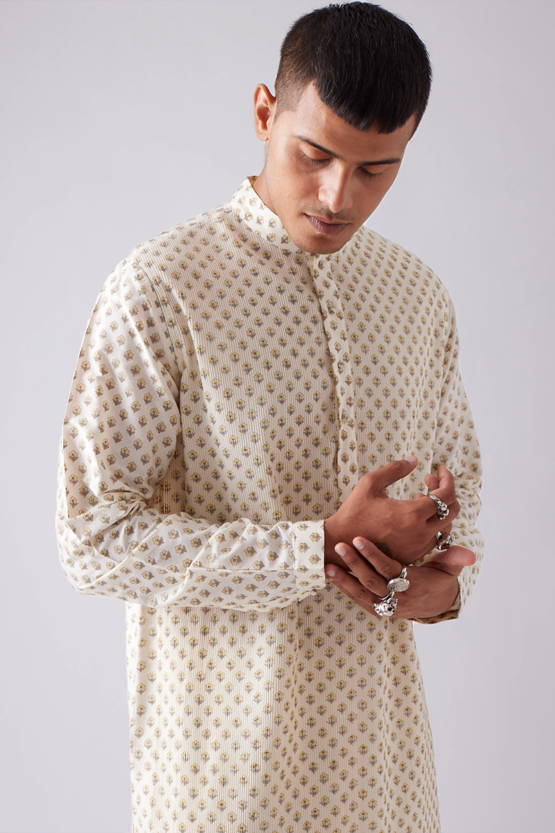 Our Front fine pintuck kurta with hand done bud flower print all over.