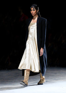 • Our Contrappunto front-open overlay jacket is crafted in wool with satin inserts, offering a structured look.