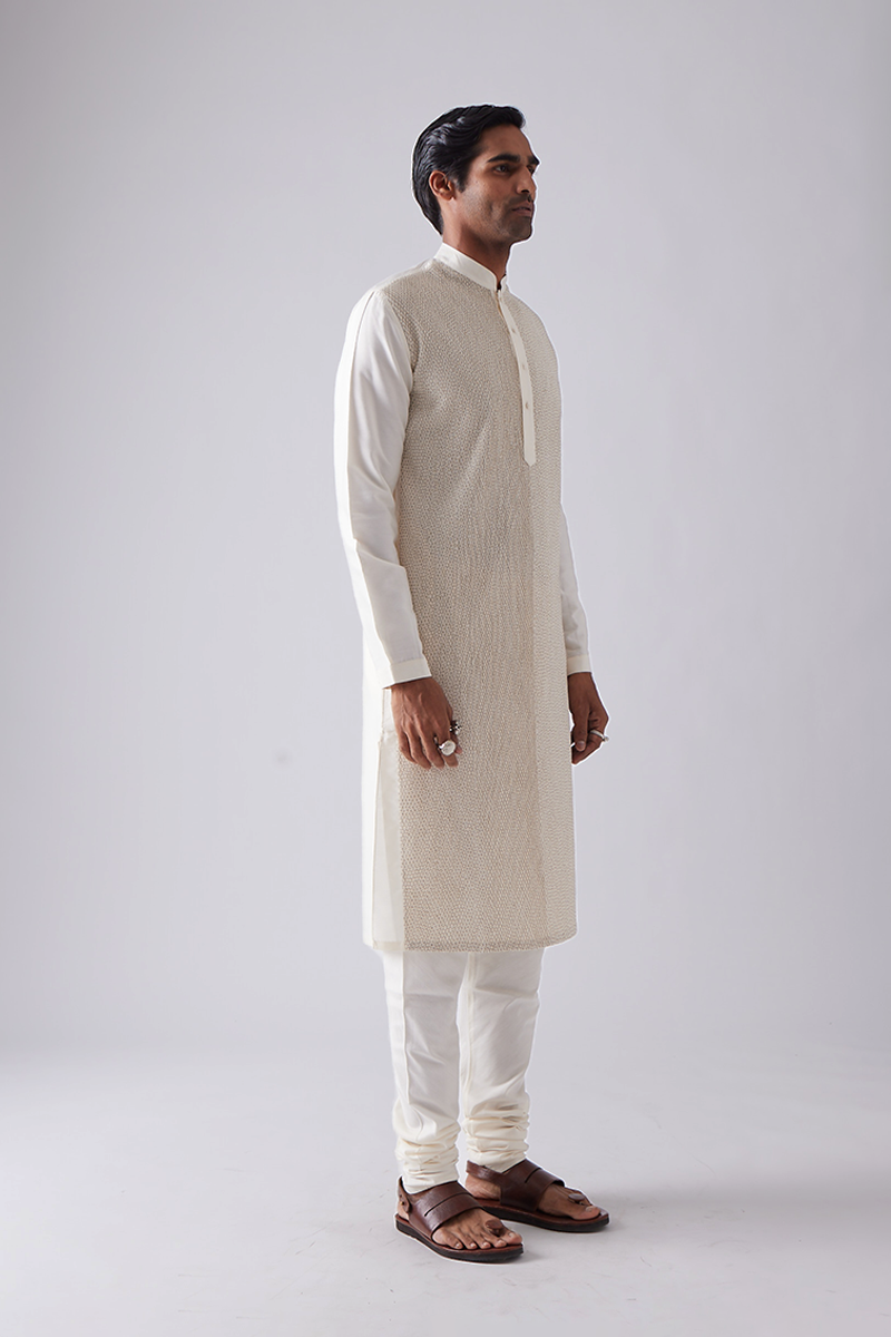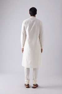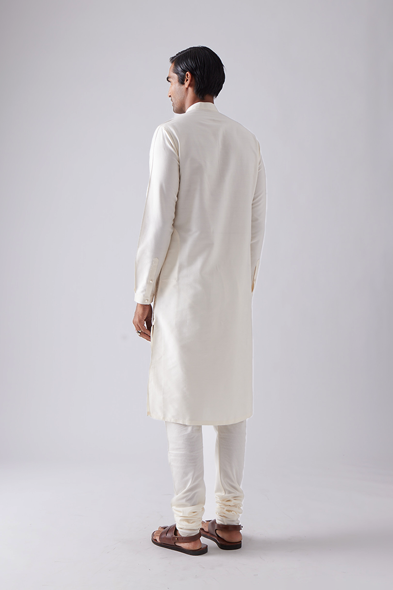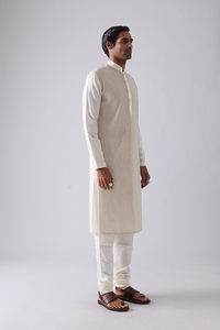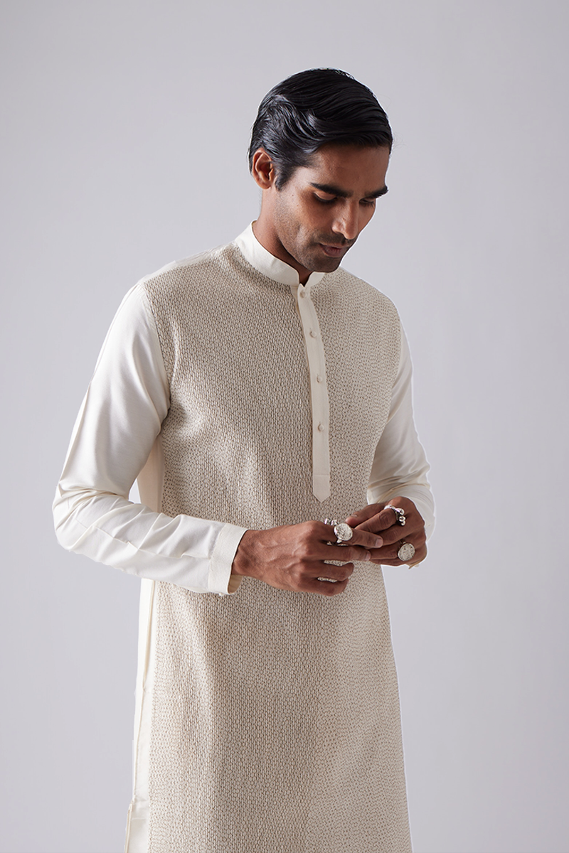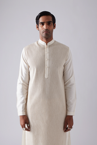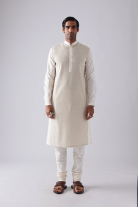 Our kurta set features fine pintuck with Diamond topstitch detailing in contrast thread.