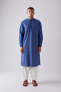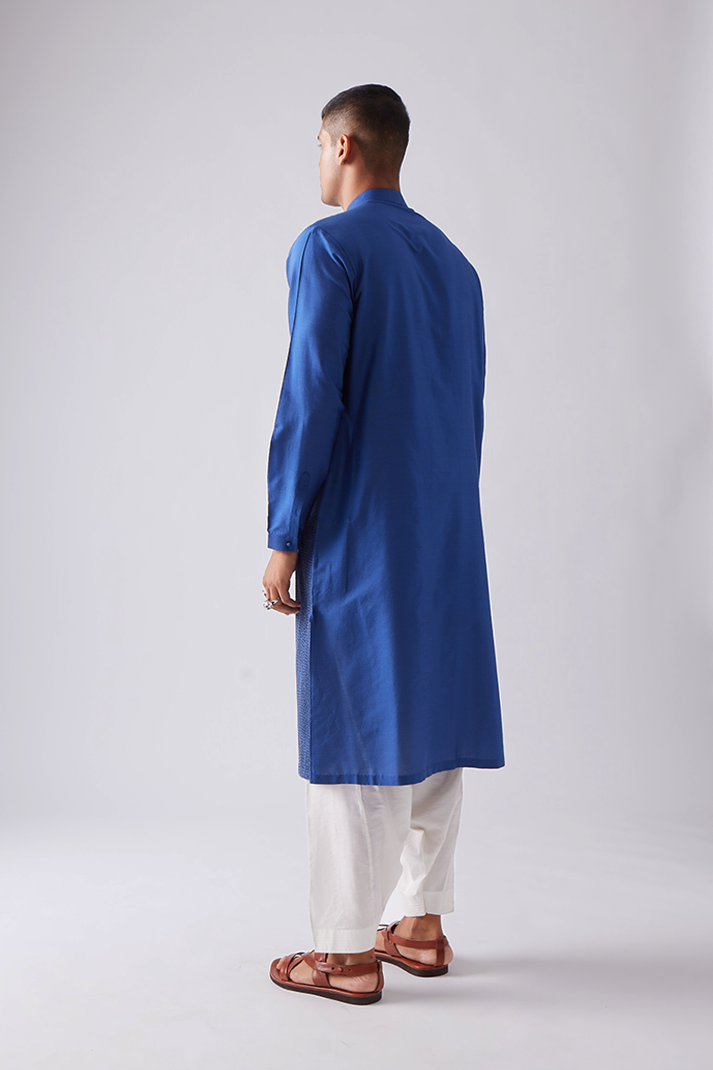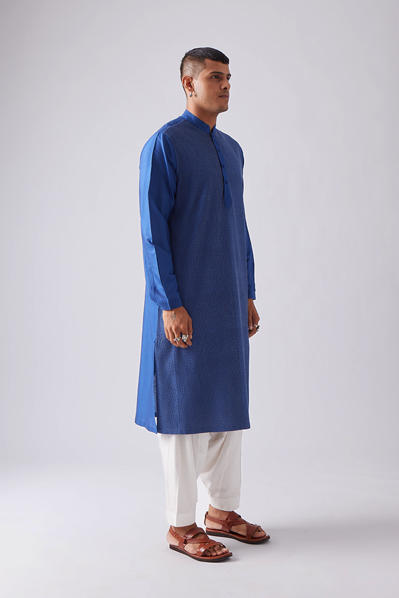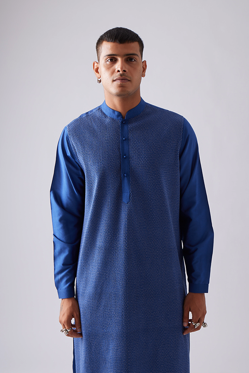 Our kurta set features fine pintuck with Diamond topstitch detailing in contrast thread.