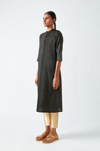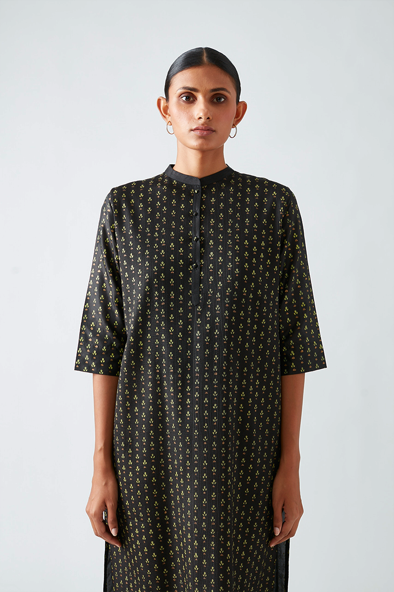 • Our Kalaheri kurta set features tonal fine pintuck derailing with contrast hand print detail.