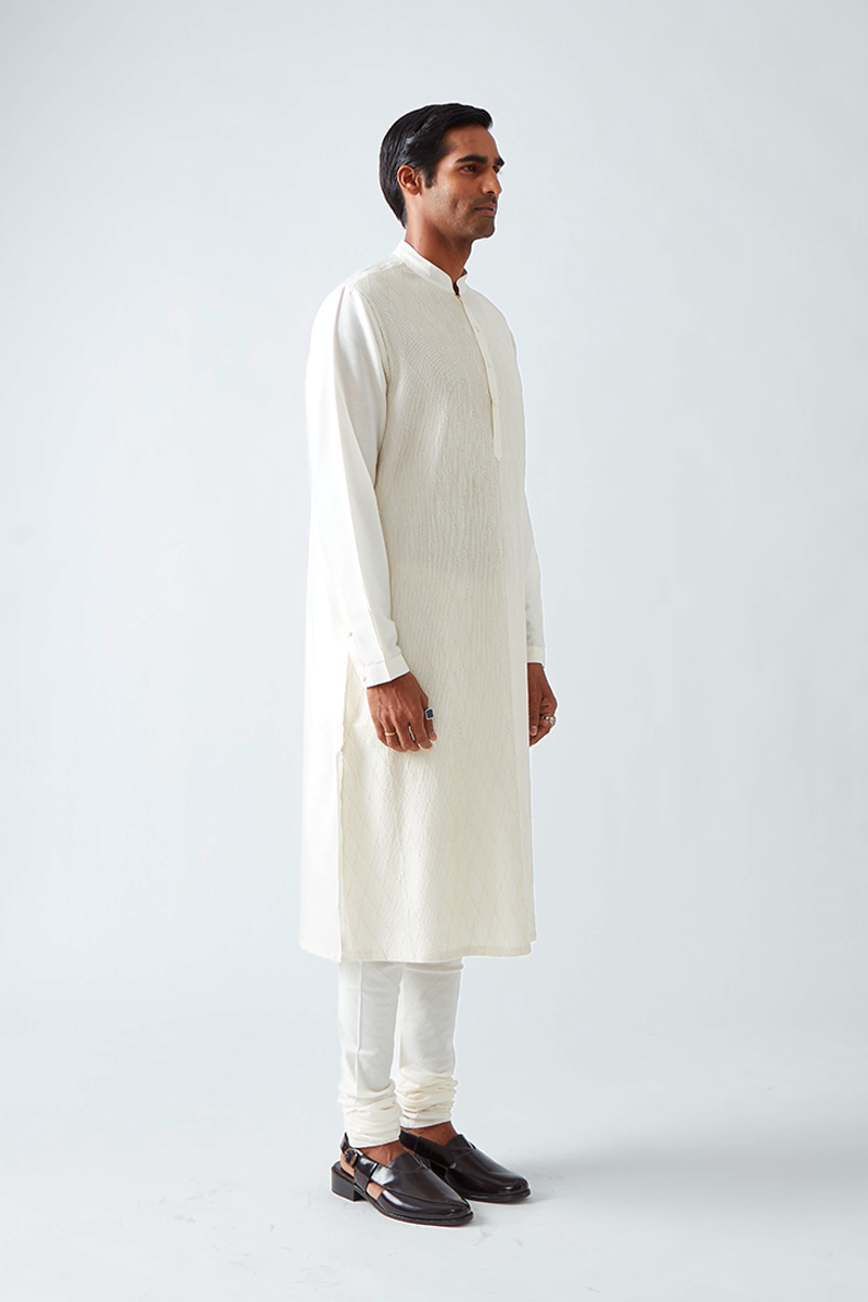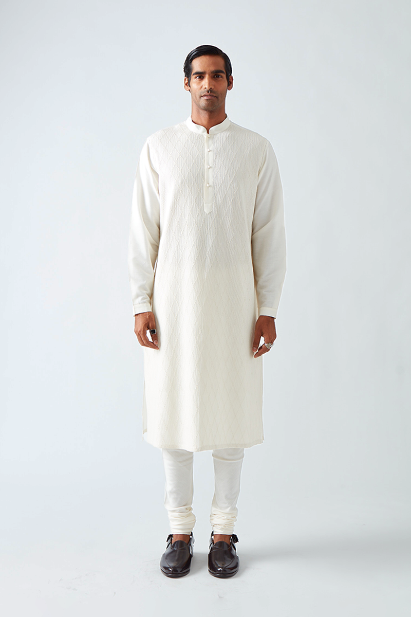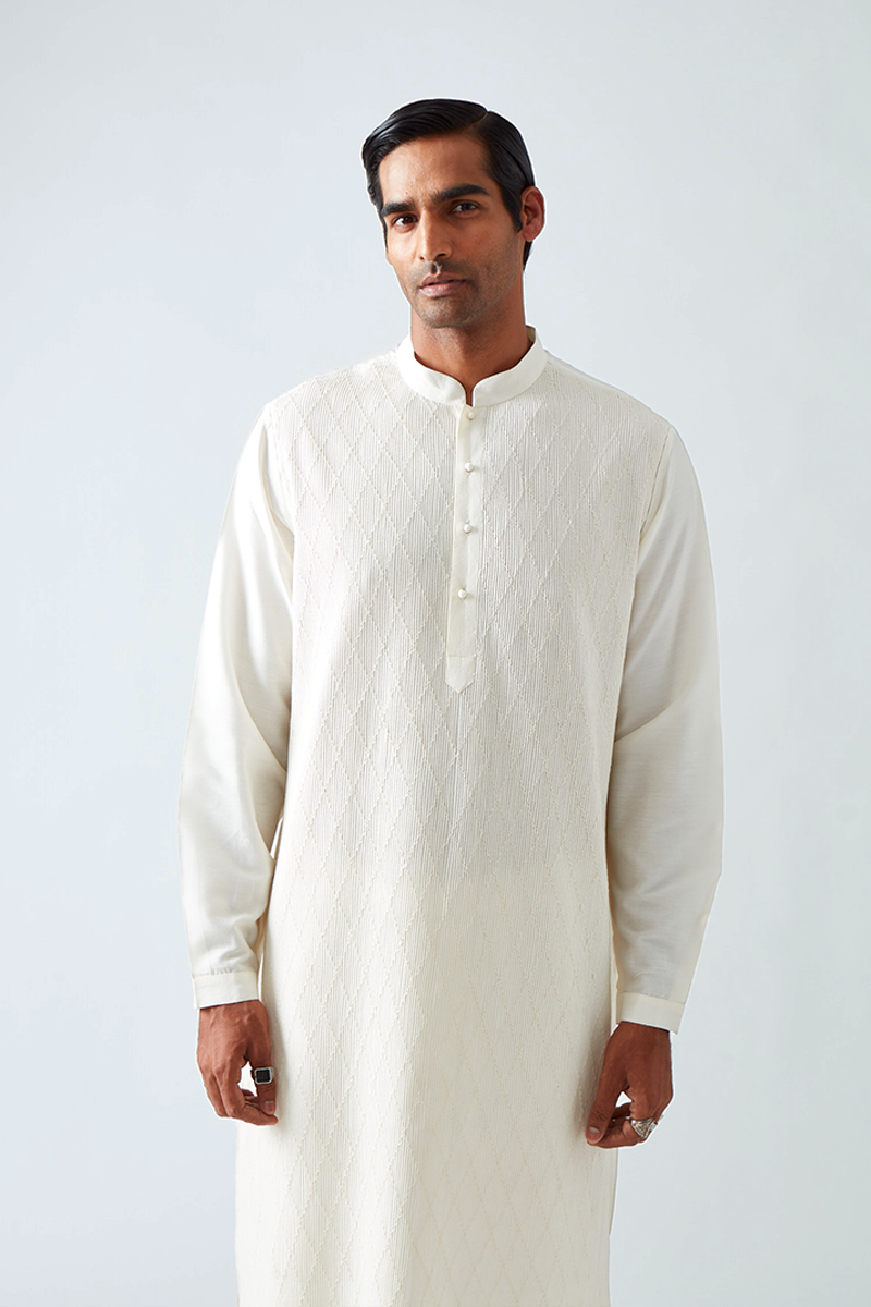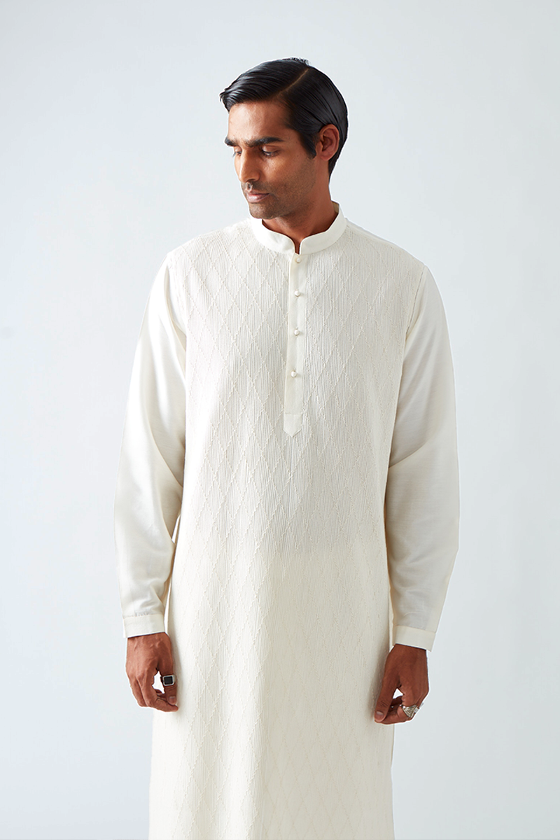 Our kurta set features fine pintuck with 3D diamond detailing.