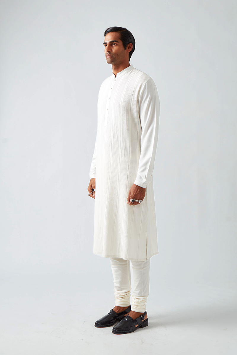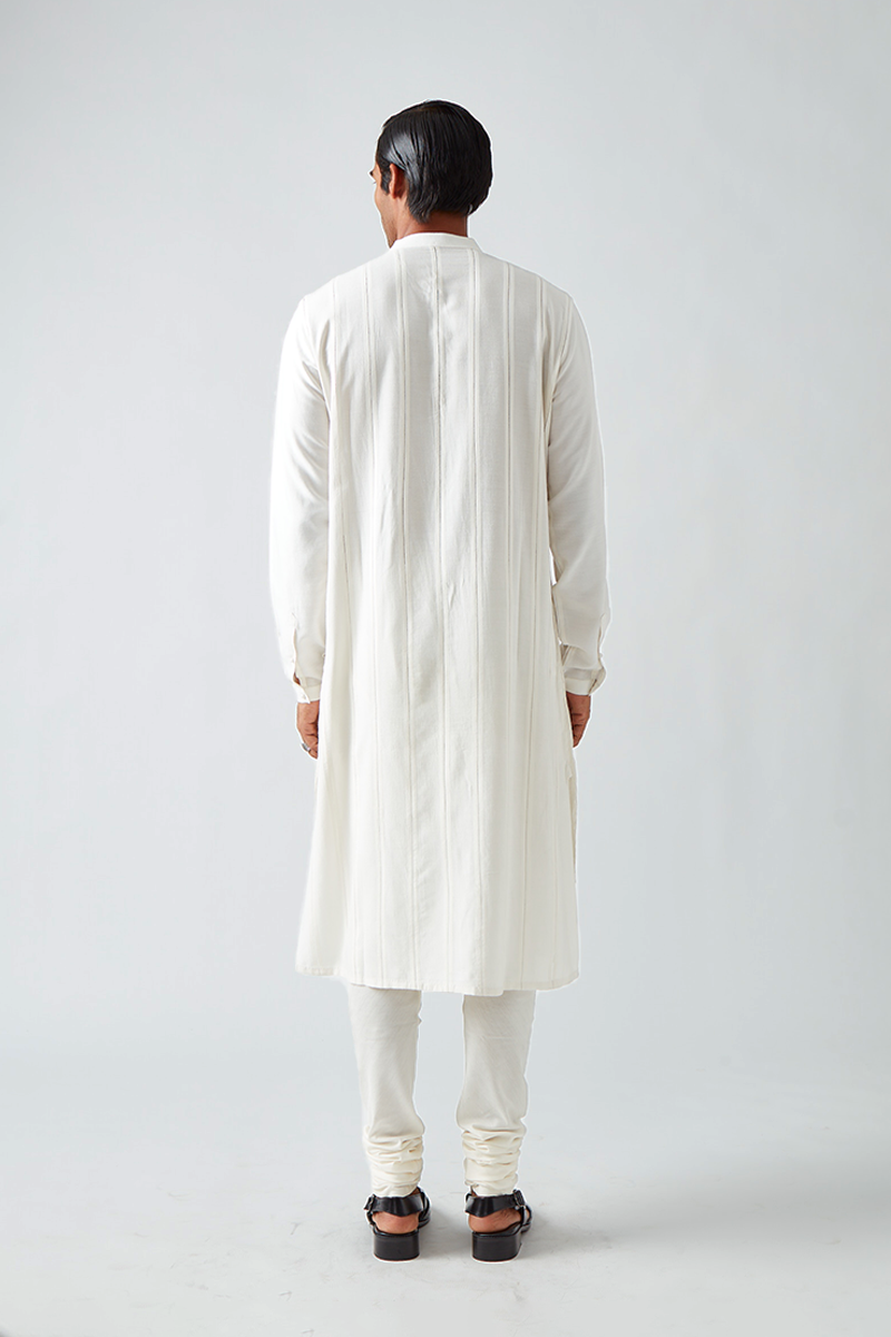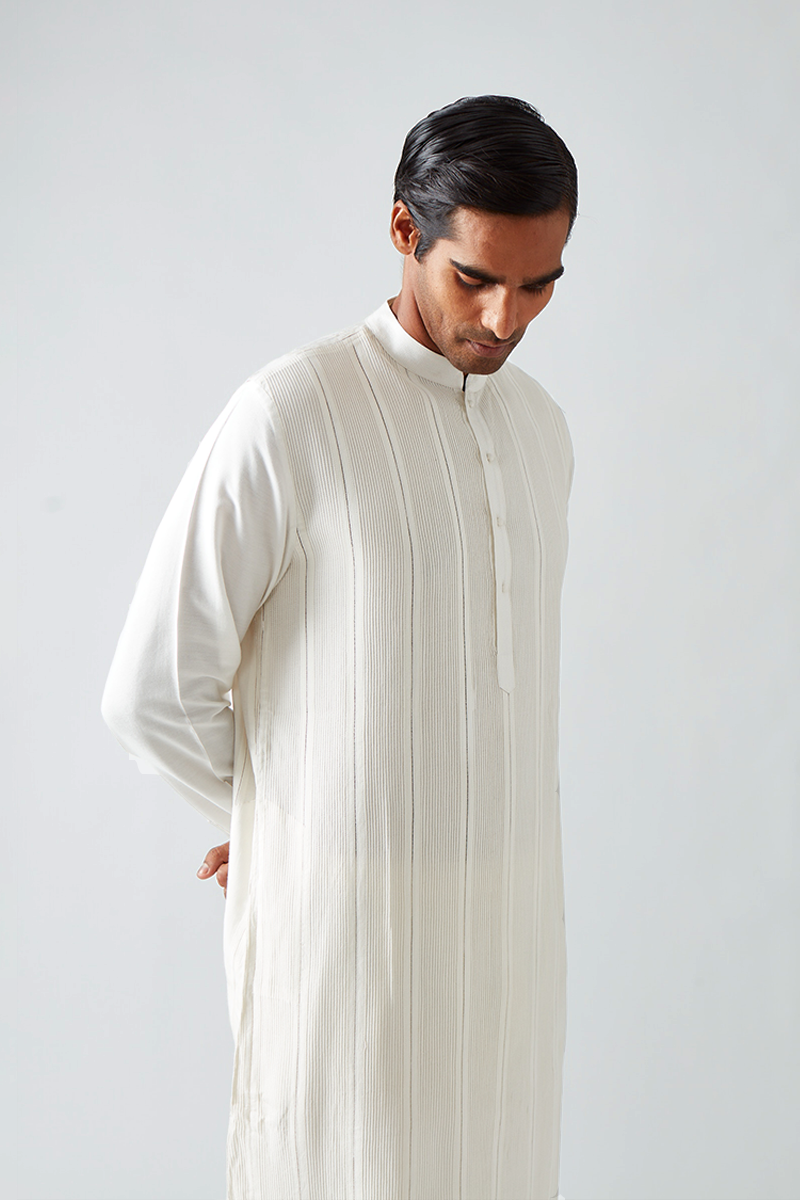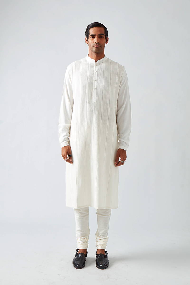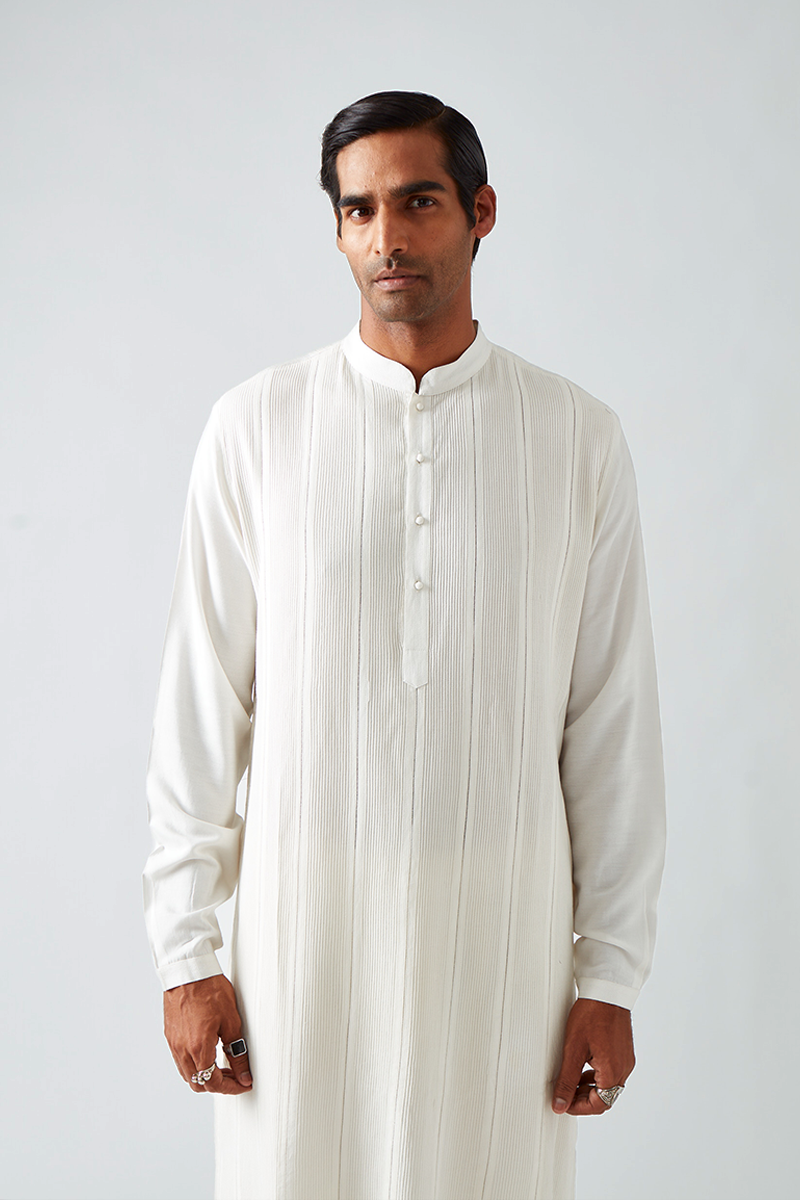 Our kurta features front fine pintuck with front and back ladder stitch in tonal thread.