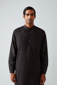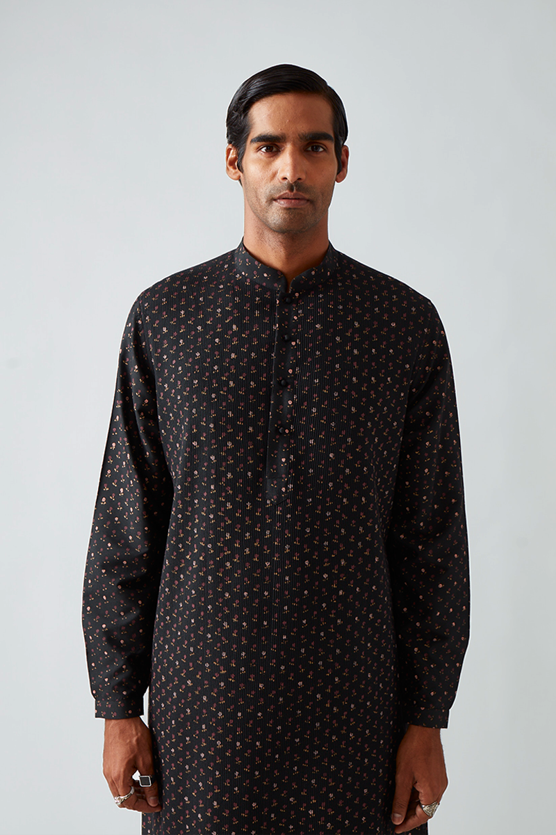 • Our front fine pintuck kurta features a band collar and all-over tulip flower hand print.