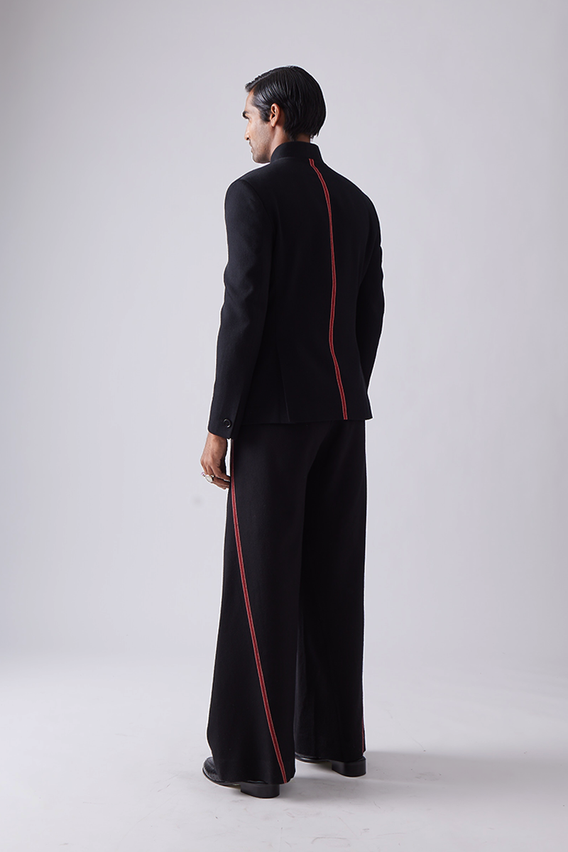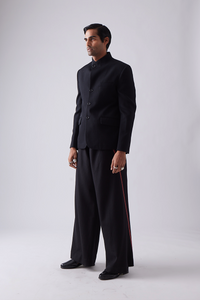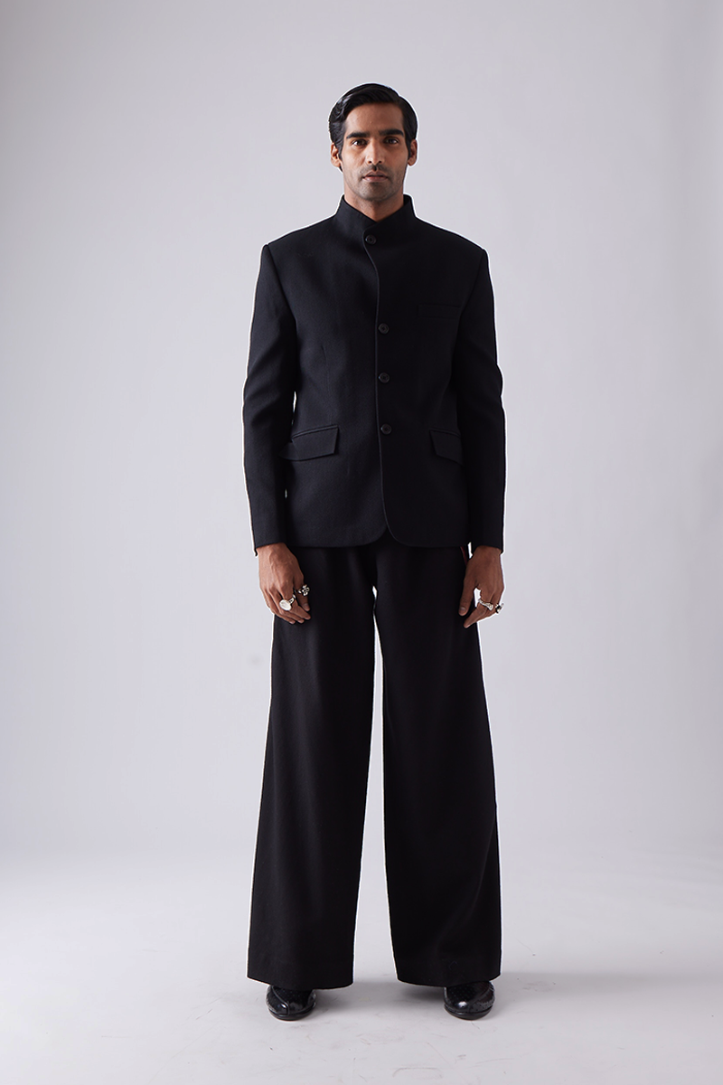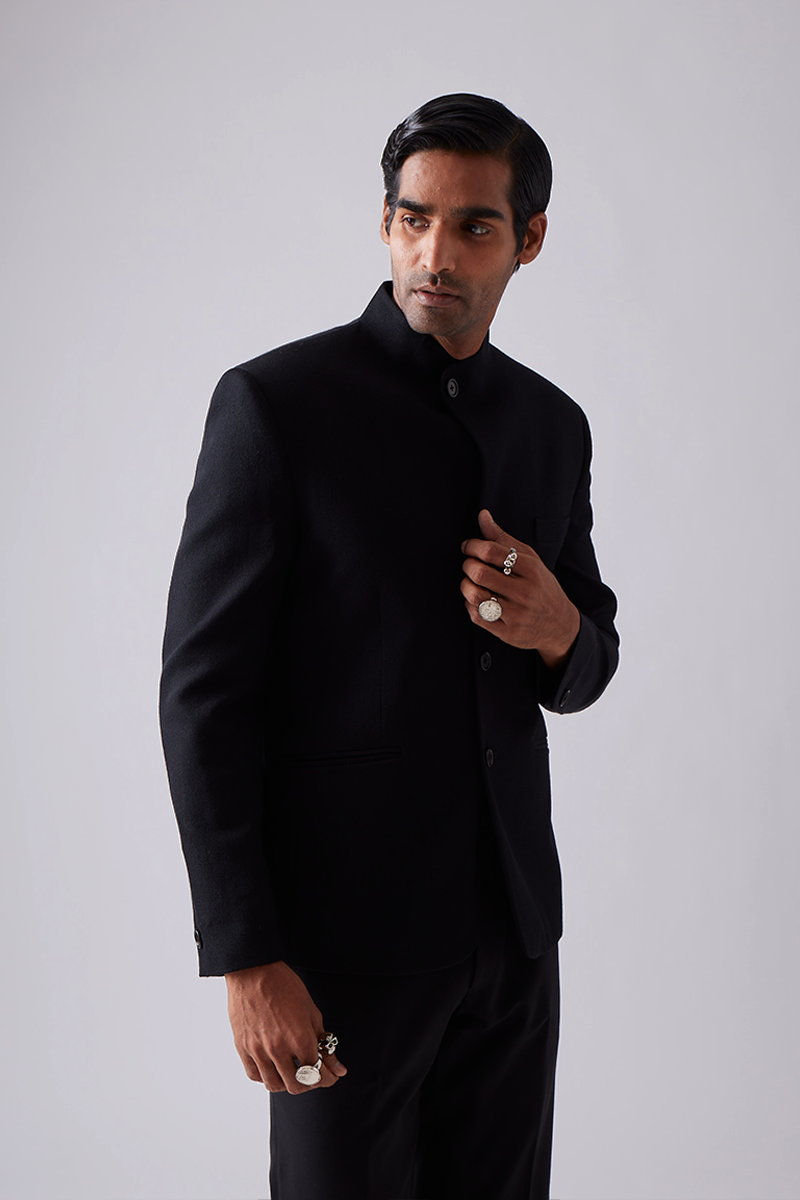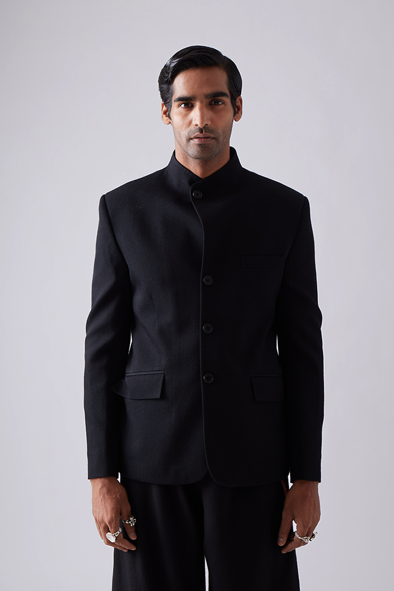 Our bandhgala features an asymmetric neck, features two flap pockets and welt pocket.