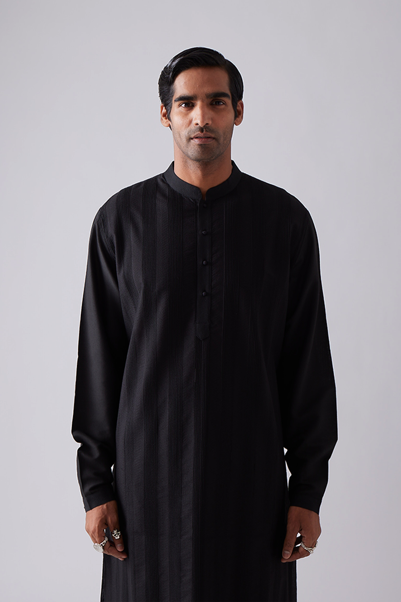 The fine pleats of our signature pintuck collection are crafted manually on single needle machines. Slight variations enhance the hand made quality of the piece.
