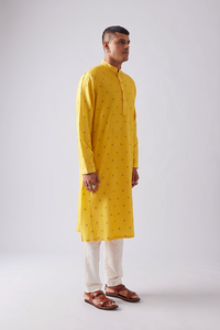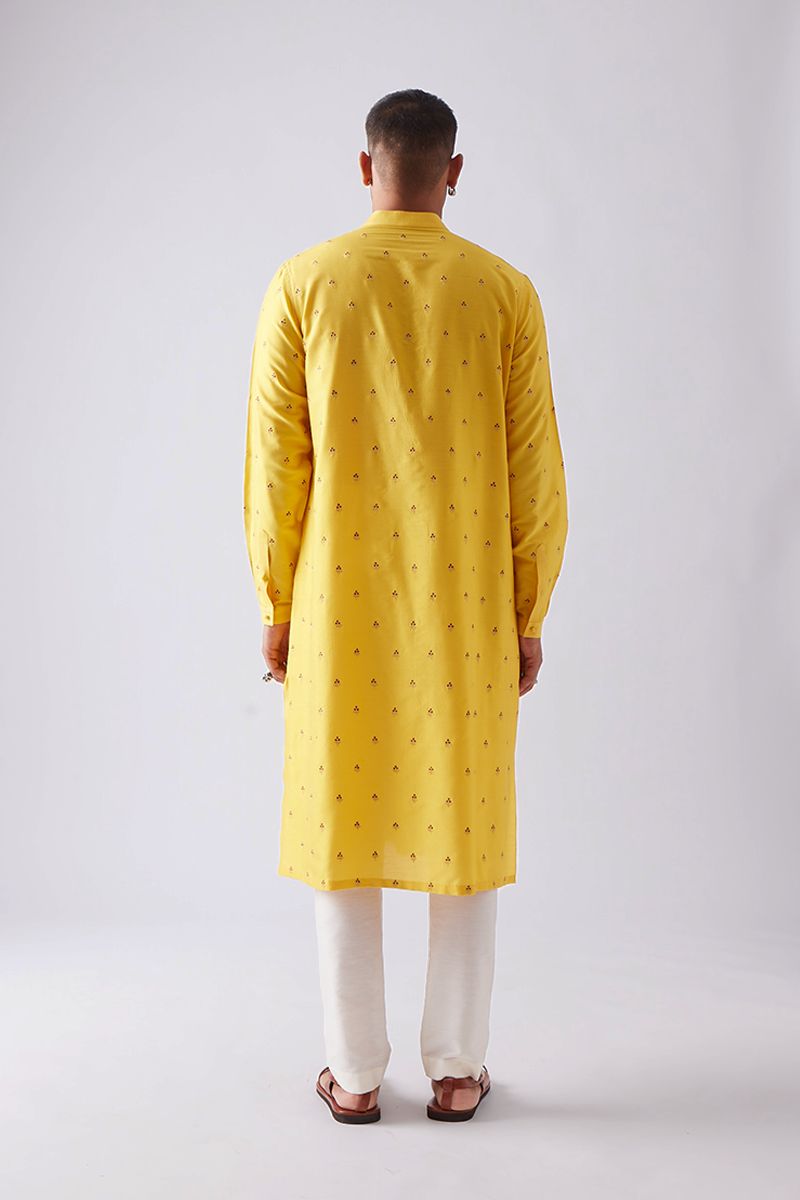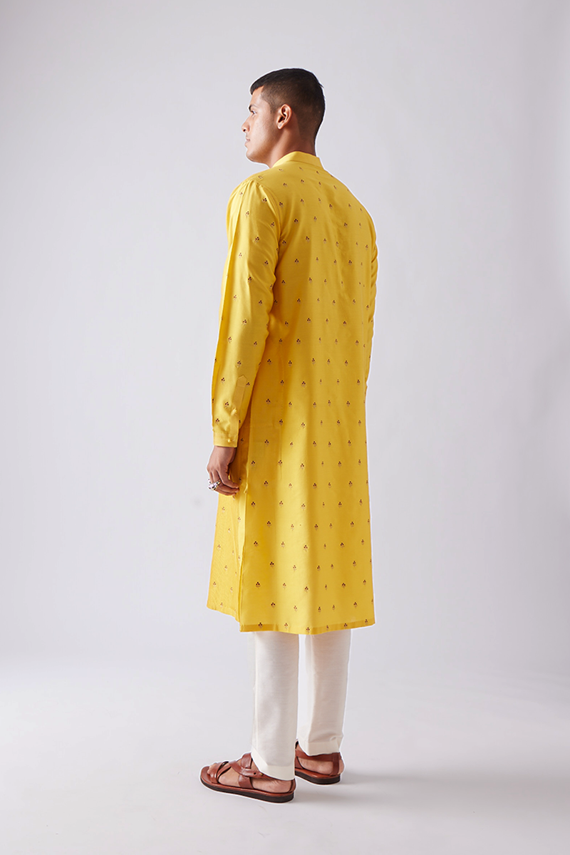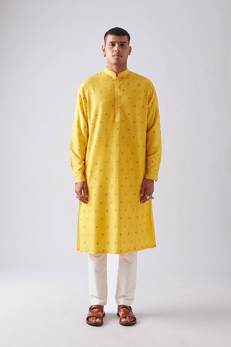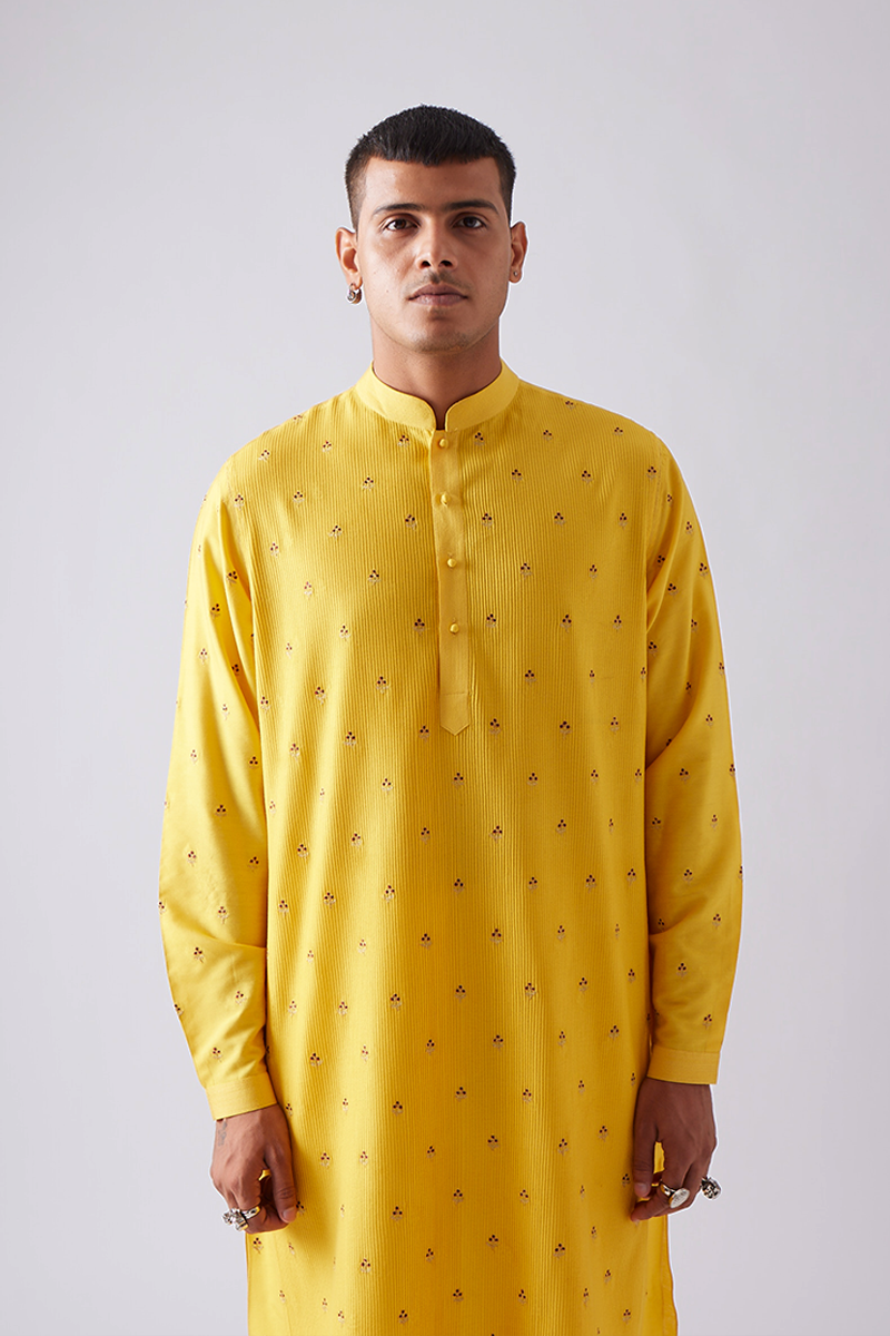 • Our kurta set features front fine pintuck and three petal flower embroidery all over.